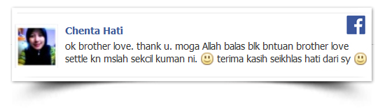 "Haha!...sorry saya terlebih excited. Sebenarnya saya ni peminat tegar Brother Love masa muda2 dulu hihi... jadi bila dengar ada new ebook, terus beli! Lin dah happy skrg bro thanks to you la jugak, so I dapatkan ebook terbaru ni kira Lin nak show support kat bro lah... all the best k. 😜😉"