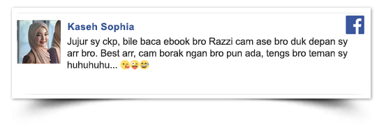 "Kak Su memang suka sangat penulisan Bro Razzi yang santai. Mudah nak baca, dan senang faham. Ya lah kita ni kan dah berumur 😉 - ebook ni memang seronok, Kak Su gelak sengsorang! haha!"