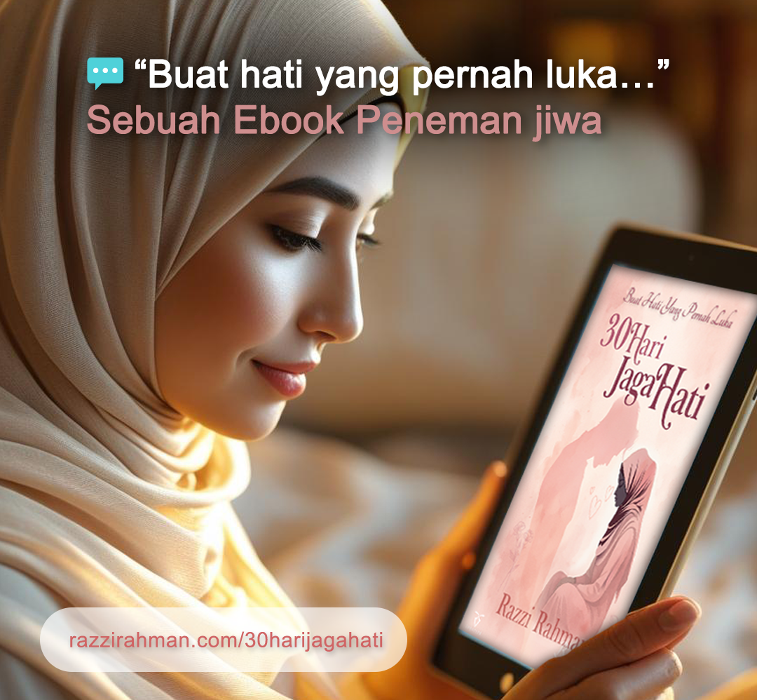 Ebook terbaru Razzi, “30 hari Jaga Hati”, adalah 30 quote penuh rasa, 30 bait-bait healing, inspirasi & motivasi untuk jiwa yang pernah kecewa — dan ingin kuat semula.